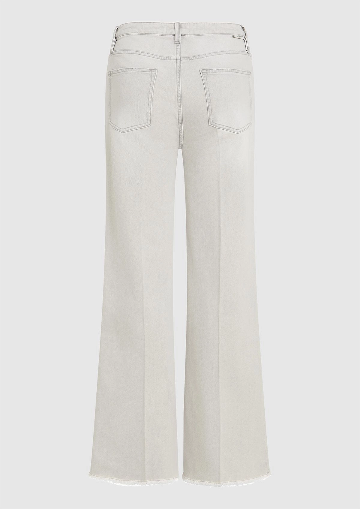 De Marlow is onze mid waist denim met wijde, licht uitlopende broekspijpen en een gerafelde onderkant. Deze jeans is gemaakt van stretch katoen en heeft een lichtgrijze wassing. Dit model is verkrijgbaar in meerdere wassingen.