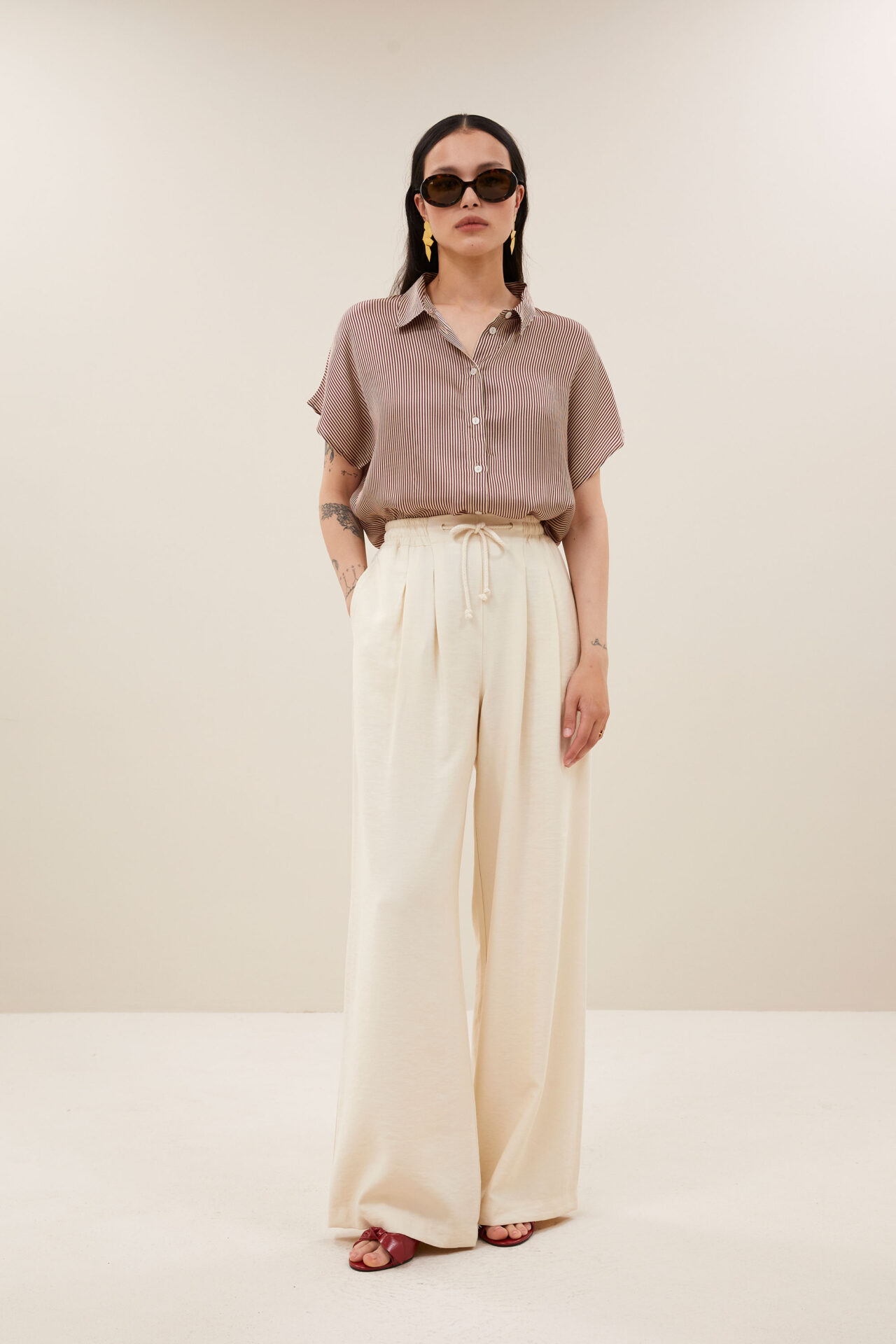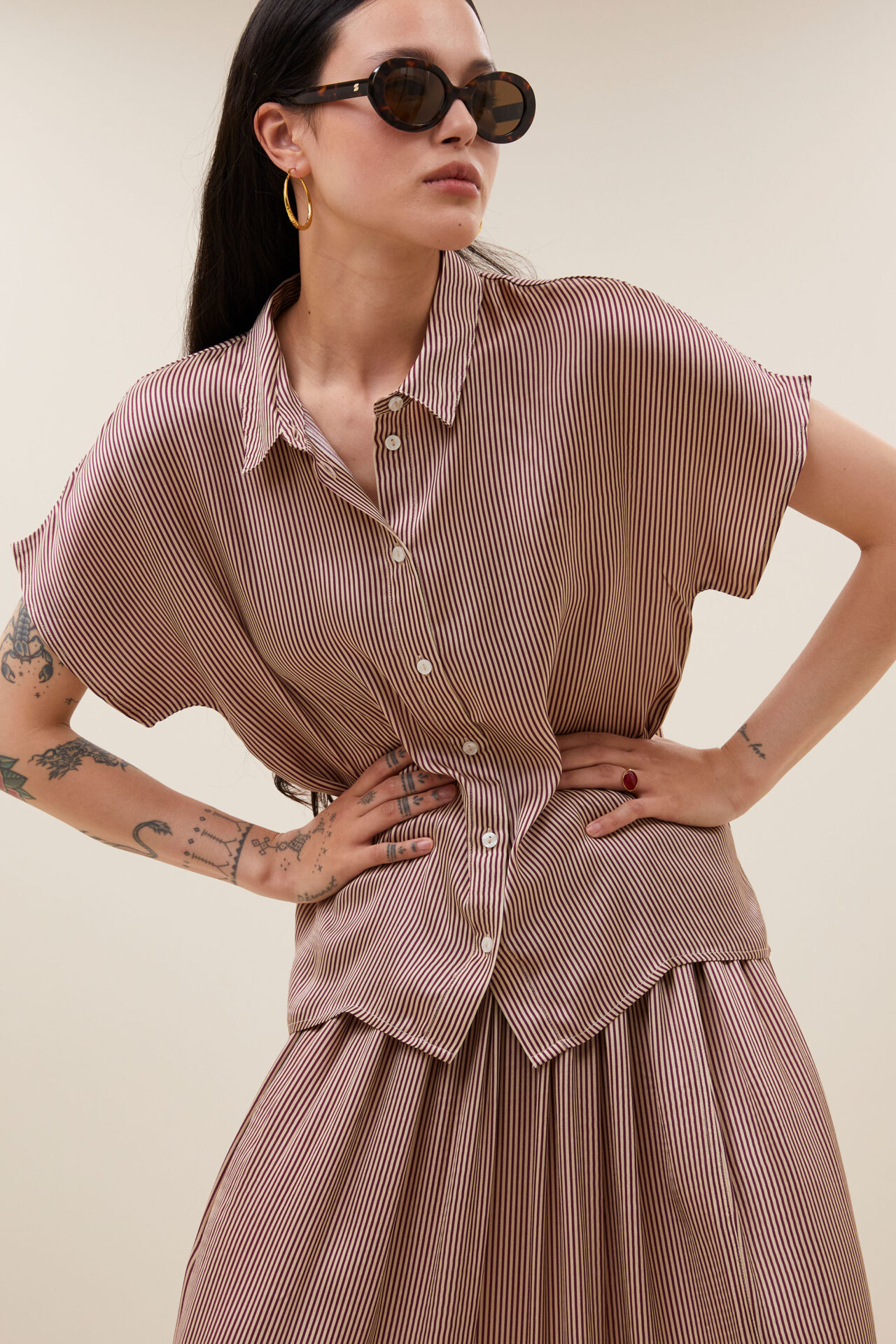 De karly viscose stripe blouse, een tijdloze klassieker in een stijlvolle gestreepte print. De losvallende pasvorm en korte mouwen zorgen voor een comfortabel en casual look, perfect voor elke dag. Met een knoopsluiting en een elegante kraag is deze blouse een veelzijdige aanvulling op je garderobe. Combineer met de mooie Reva rok om jouw look af te maken!