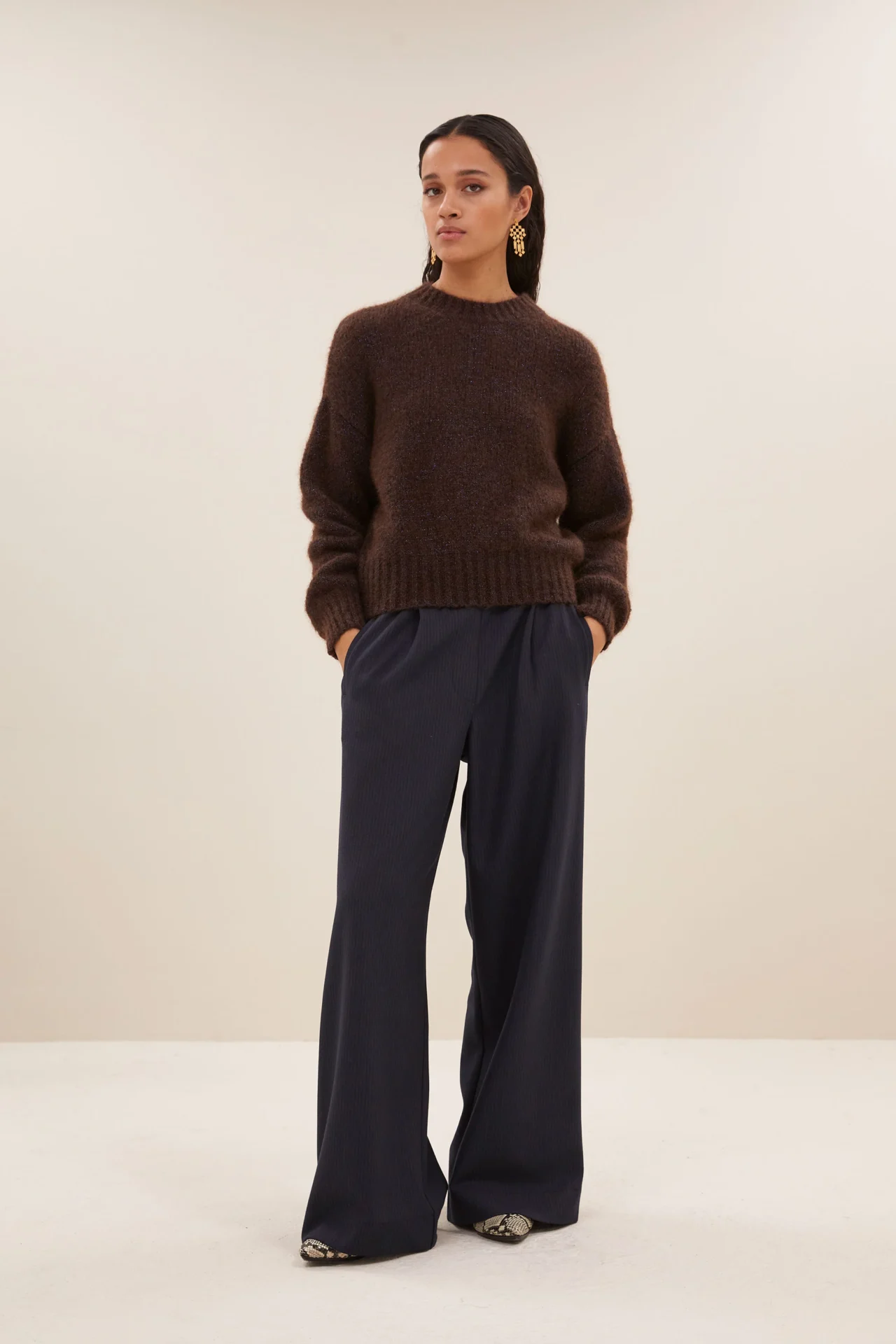 Ontdek de sonny sparkle pullover, een casual chic pullover met een comfortabele normale pasvorm en een flatterende ronde halslijn. Deze duurzame pullover valt perfect op maat en valt op door zijn verlaagde schoudernaden en subtiel geweven lurex draad, die samen met de zachte mix van mohair zorgen voor een sprankelend en luxueus gevoel. Perfect voor elke dag!