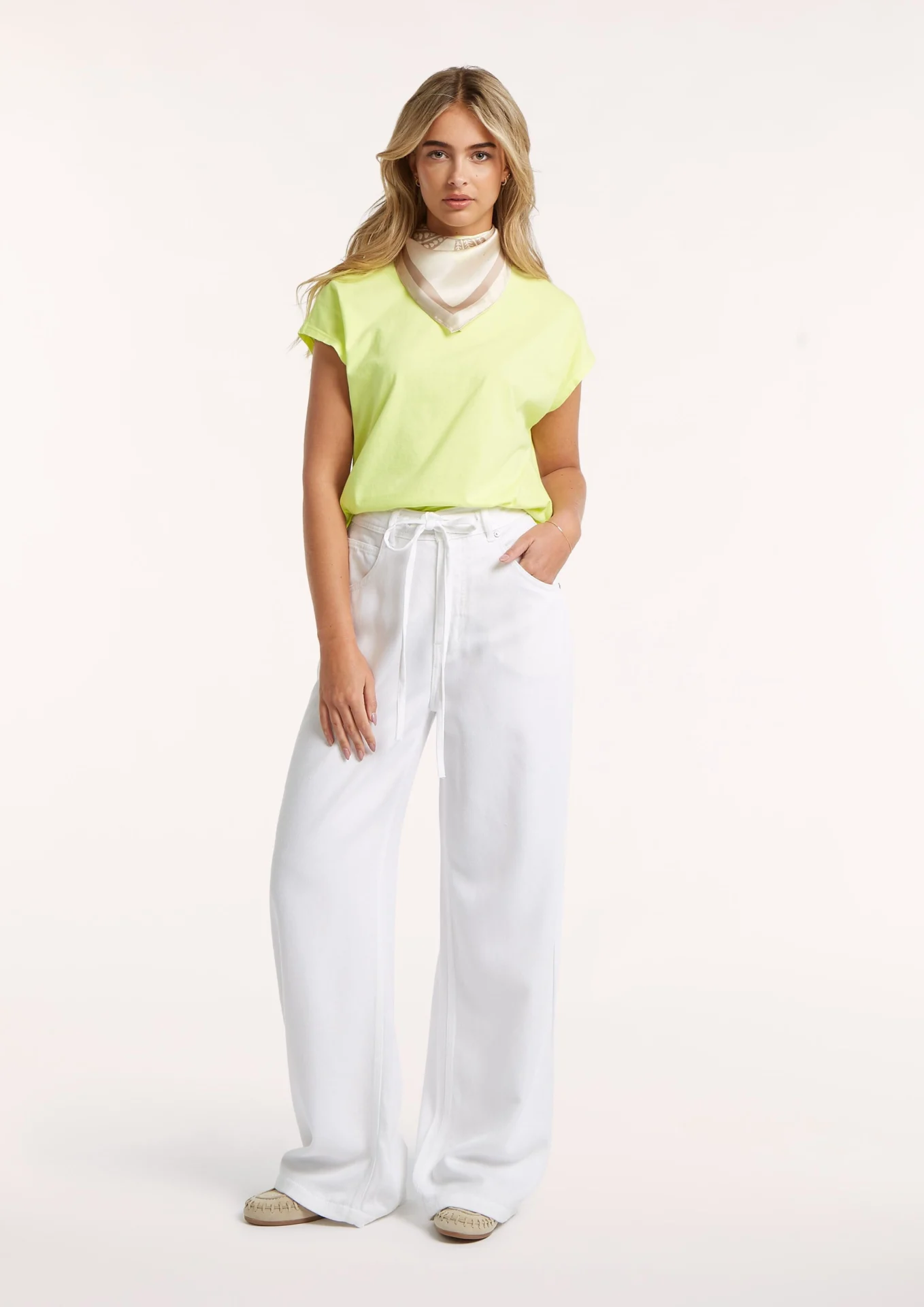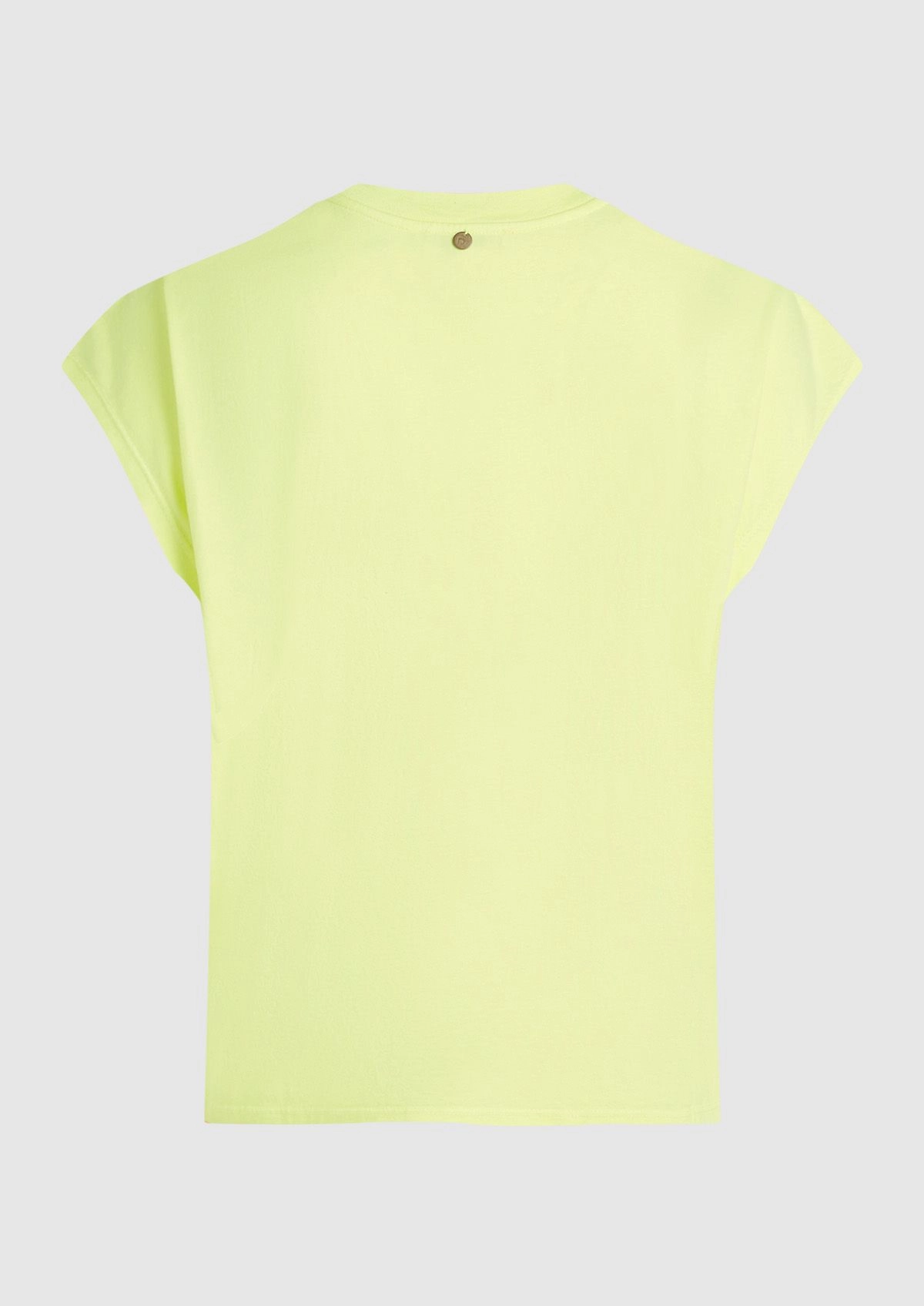 Lime lime geel mouwloos dames shirt gemaakt van katoen. De Jaimy tee heeft een loose fit met een ronde hals. Ook beschikbaar in andere tinten.