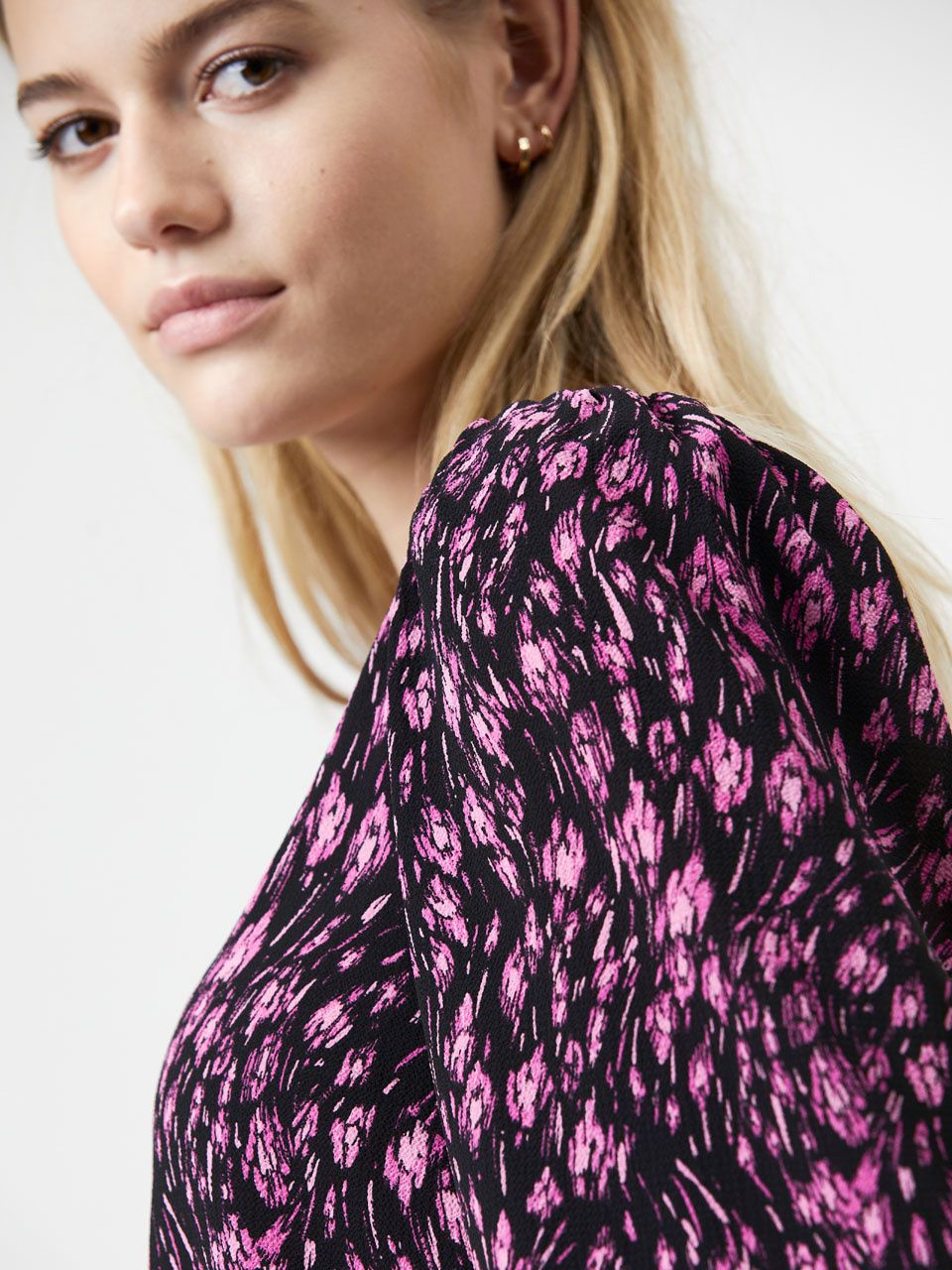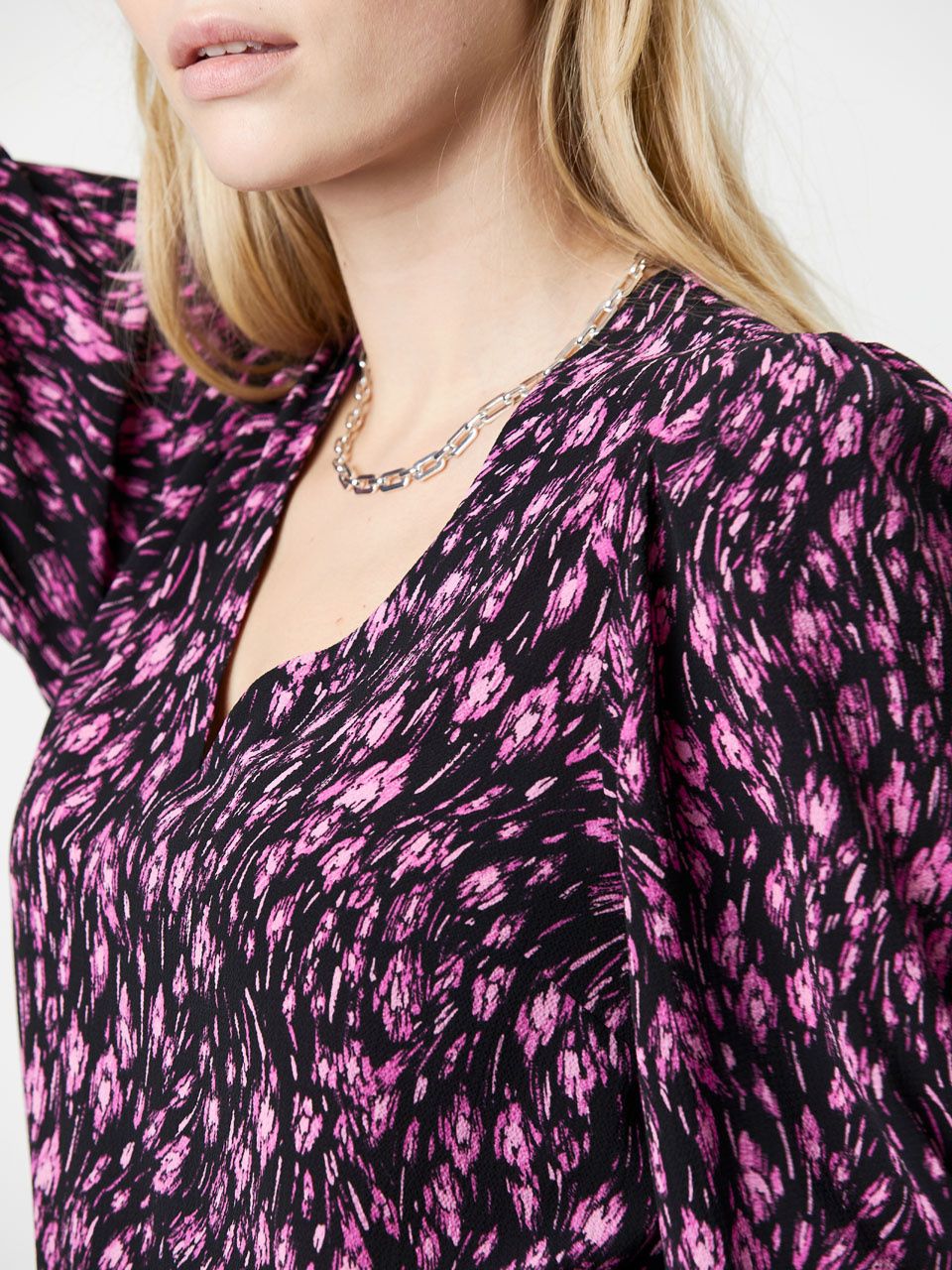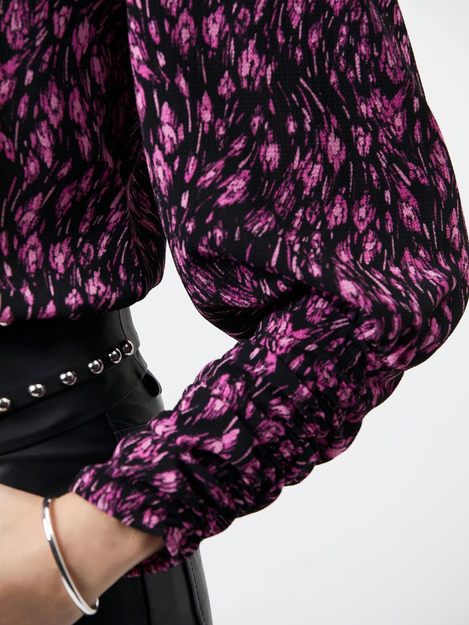 Denk aan de Sumara luipaardtop als je zin hebt om je te verkleden. De top is gemaakt van een bedrukt stretch crêpe dat gerecycled polyester bevat en heeft een diepe V-hals. De schouders zijn licht gepoft en de manchetten sluiten nauw aan. Draag deze top met print op een stoere leren broek of jeans voor een look die zowel overdag als ’s avonds goed staat. Voor op kantoor is het makkelijk te combineren met een nette rok of pantalon.