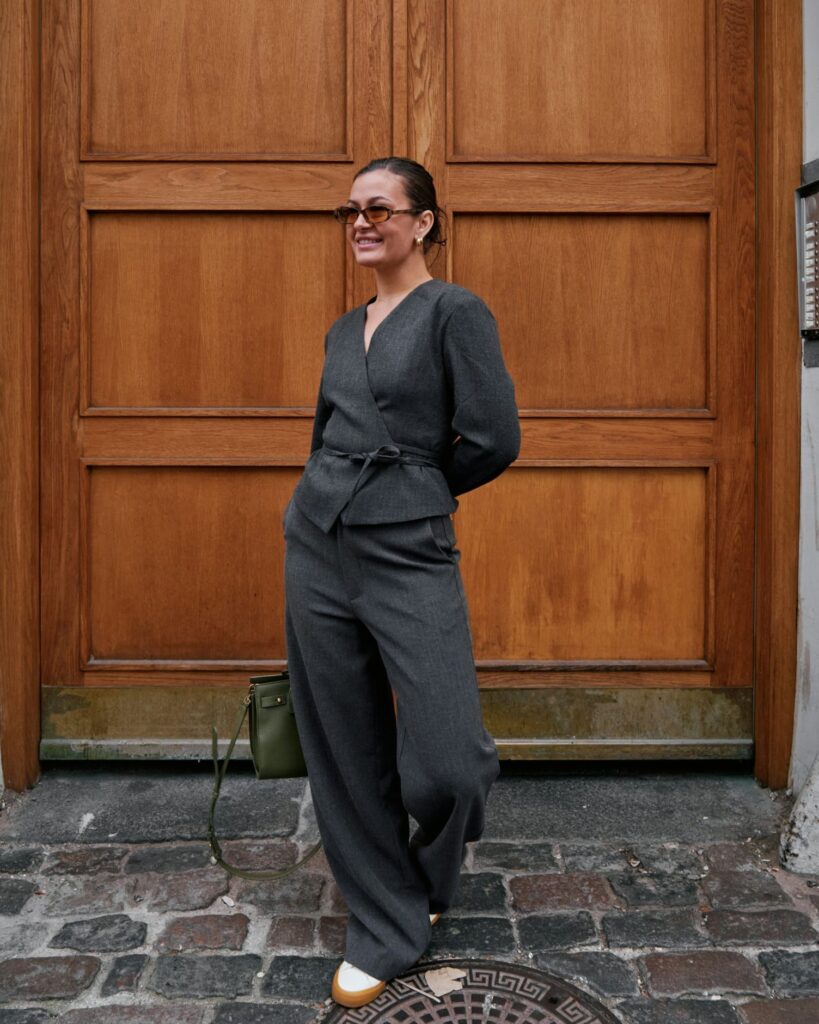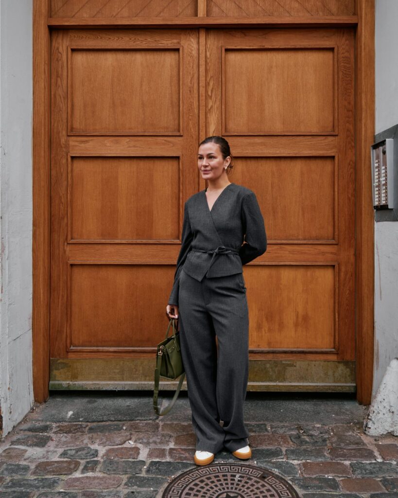 Stoere jumpsuit met wijde pijpen, zakken en een opening aan de achterkant. Gemaakt van een fijne, zachte crêpe kwaliteit. De jumpsuit draagt comfortabel en kan zowel formeel als casual gedragen worden, afhankelijk van de gelegenheid. Het model is 176 cm lang en draagt maat 36