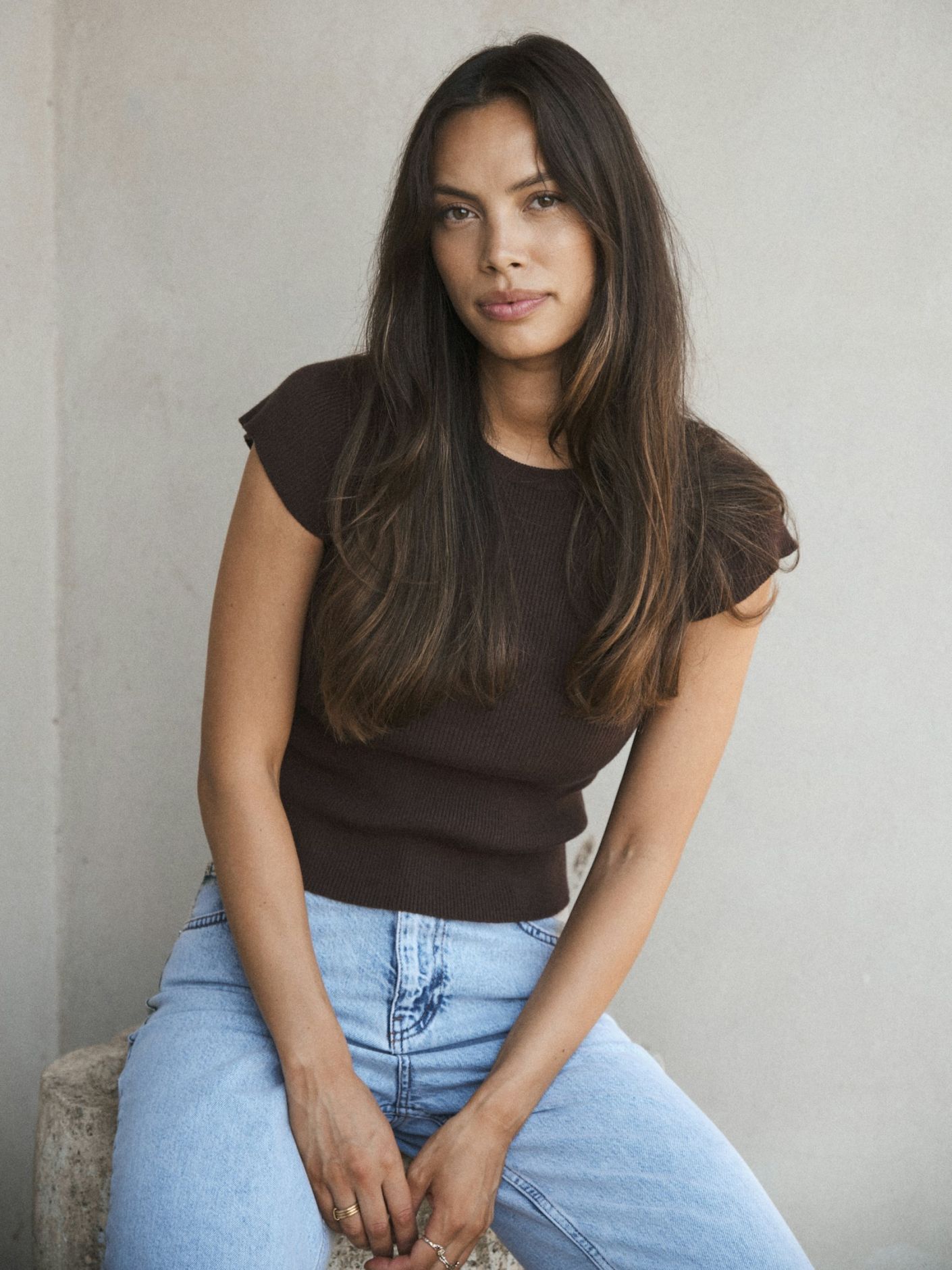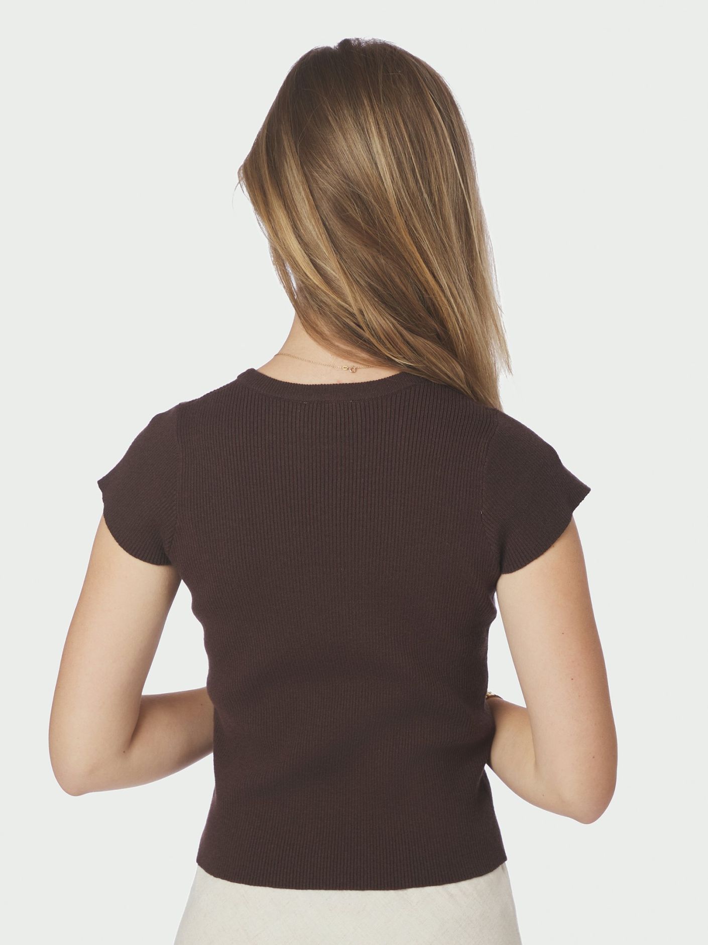 Leuk T-shirt van een fijne, zachte stof met korte mouwen. Het model is 176 cm lang en draagt maat 36.