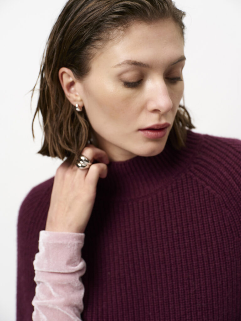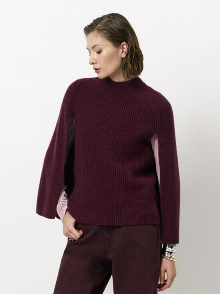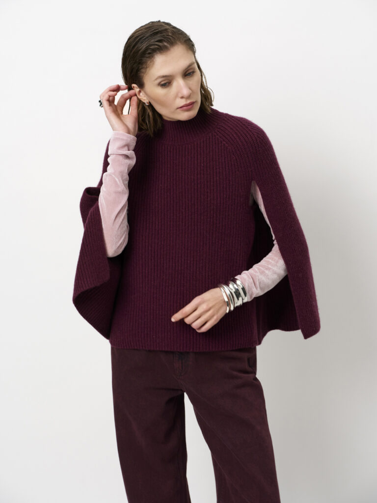 Dante6 cape sweater Romi mulberry red